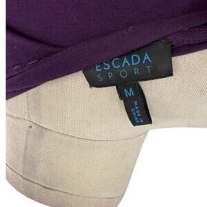 Escada Sport Purple Jersey Pintuck Short Sleeve Tee Rosette Belted Size Medium