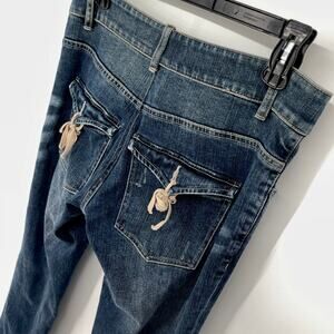 Escada Sport Selvedge Skinny Jeans Womens Sz 36 / US 6 Dark Wash Blue Back Tie Flap Pockets
