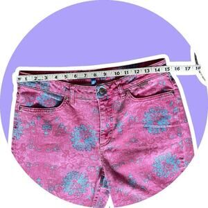 Escada Sport Women’s Kate Pink Blue Floral Jeans Kick Flare Crop Sz 38 US 8 M