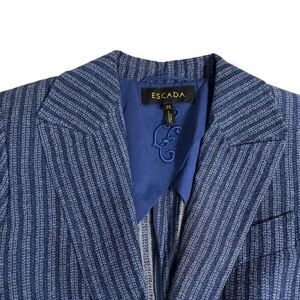 Timeless and chic, this Escada striped one-button blazer adds sophistication to any wardrobe. Features a tailored silhouette with notched lapels, structured shoulders, and a flattering single-button closure. Made with high-quality craftsmanship and attention to detail, it’s perfect for professional, formal, or high-fashion styling. In excellent pre-owned condition with no stains, rips, or tears.