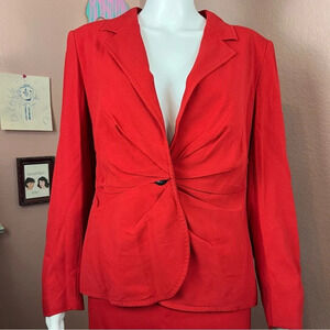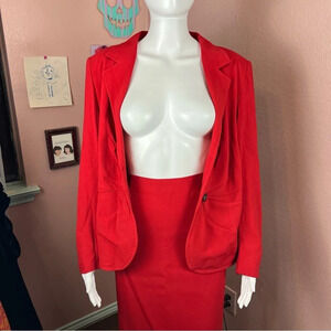 Minor tiny holes on each side of skirt on side of blazer. Very small in size.