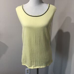 Escada Top Sweater Tank Thin Knit Sleeveless Yellow Wool Size 42