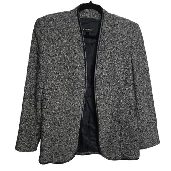 Escada Tweed Wool Cashmere Blend Open Cardigan Jacket Sweater US 6 EU 36 Women's