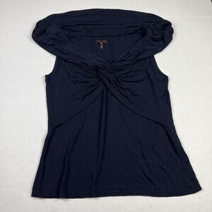 Escada Twist Front Blouse Black Sleeveless Collared Sleek Top Size 40 MEDIUM