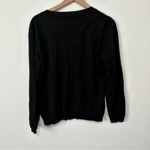 Features: black, ribbed v neck, neiman marcus, made in Italy, ribbed cuffs, cardigan
