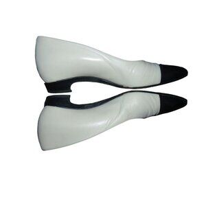 Escada Vintage Black & White Italian Leather Kitten Heel Cap Toe Pumps 37.5 7.5