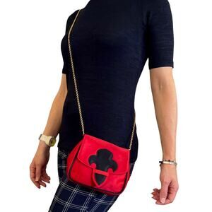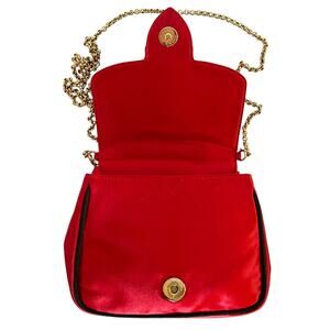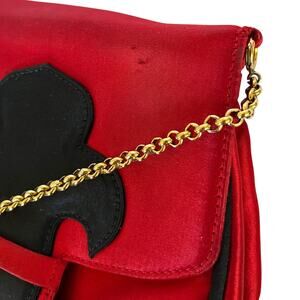Escada Vintage Fleur De Lis Red Satin Chain Strap Crossbody Evening Bag