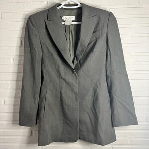 Escada Vintage Gray Button Down Long Wool Pocketed Blazer, Women’s Size 4