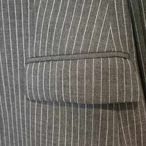 Escada Virgin Wool Gray Pinstripe Long-Line Blazer Jacket, Size 40, US 10