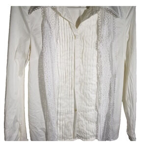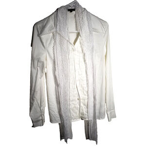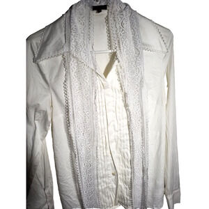 Escada White Lace Button Front Collared Long Sleeve Top Size 38 / 4