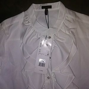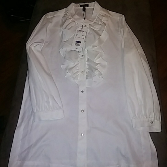 Escada White button down Ruffle blouse