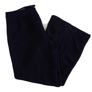 Escada | Wide Leg Slit Crop Pants Womens Size 44 Navy Blue Silk Loose Fit