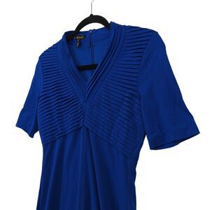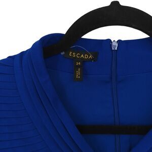 Details: Escada Women GER 34 US 4 Dress Azure Blue Midi Bodycon V Neck Pleated
