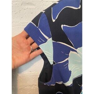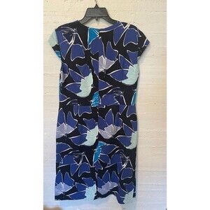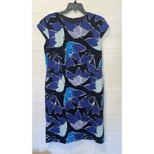 Escada Women’s Blue Floral Cap Sleeve Knee Length Shift Dress, 42