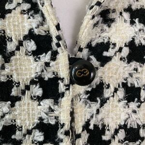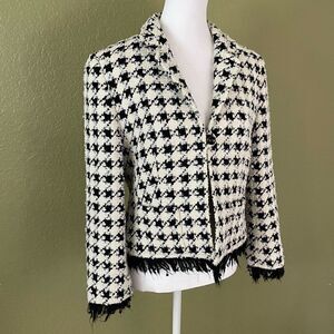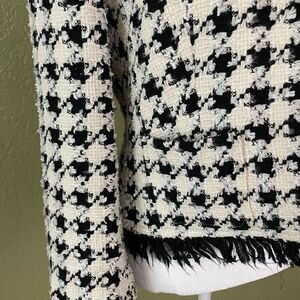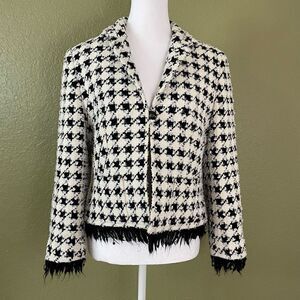 Escada Womens L White Black Houndstooth Designer Knit Wool Jacket Coat