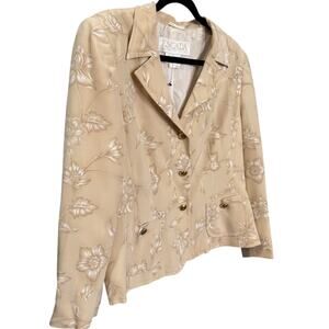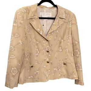 Escada Women's Size 42 Silk Skirt Suit Set Beige Cream Floral Feminine Old Money