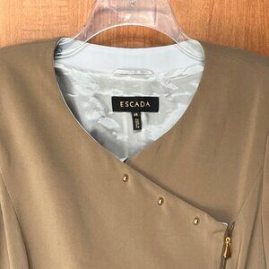 Escada Womens Solid Brown Asymmetric Gold Zipper Blazer Jacket Size 46 XL READ