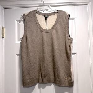 Escada Wool Blend Taupe Cream Sleeveless Sweater Vest XL Designer NWT Neutral