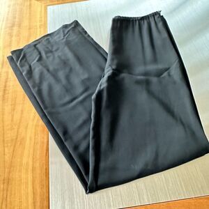 Asada black Shaer wide leg dress pants in size 36. Side zipper closure. The length is 44 inches, the waist is 28 inches, the rise is 12 inches, and the hip measurement is 36 inches. Good condition.