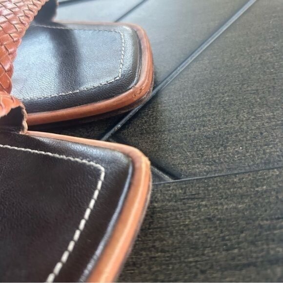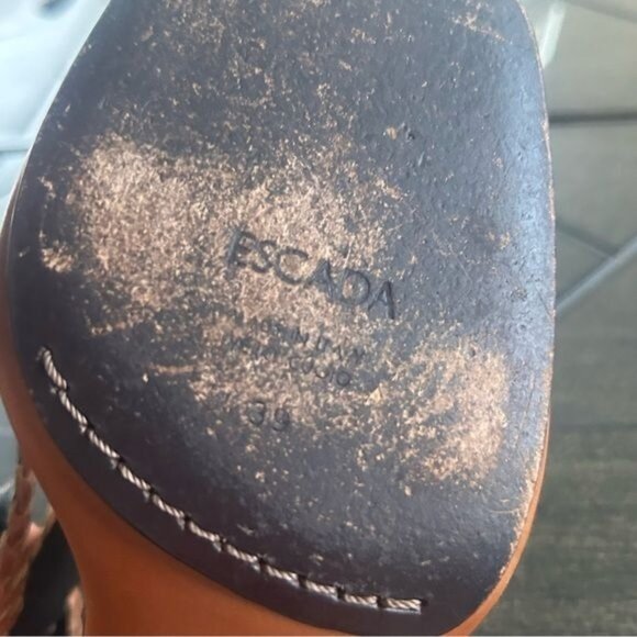 Escada braided leather 3" block heel sandals, neutral, chic size 39 EU ladies