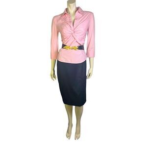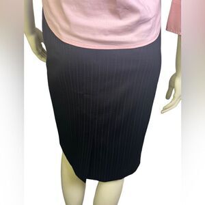 Classic black pencil skirt from Escada by Margaret Ley with tonal vertical stripes. Back zip/button closure, 100% new wool, and small belt loops. The size 40 measures as follows:
