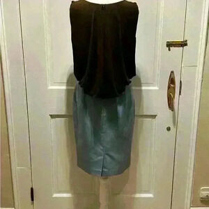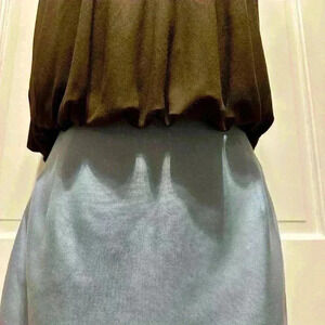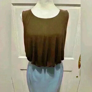 Escape one pcs dress, brown and light blue, lined top and bottom, size 36, slightly used, tiny spot in front of dress, please see photo, length is 42”.