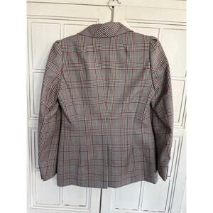 Escada size 36 or US 6 or small wool plaid blazer in excellent condition. No signs of wear. Brown, beige and a tiny bit of orange. Measures 19” from armpit to armpit and 26 1/2” long.