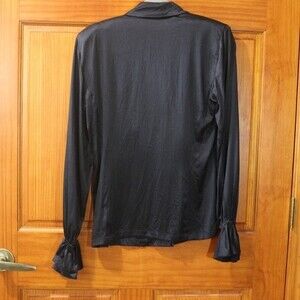 Escada vintage Black Silk Ruffle Button Down Blouse 100% Silk Germany 36