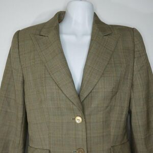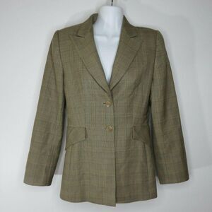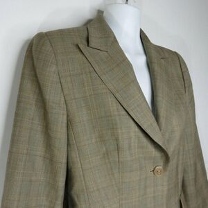 Escada Ermenegildo Zegna Wool Windowpane Check Brown Blazer Size 34 Small