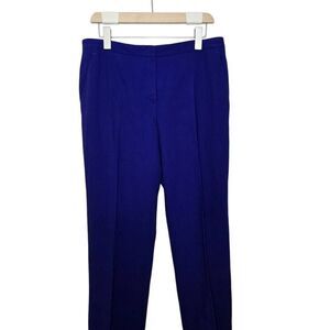 Add a vibrant pop of color to your wardrobe with these elegant Escada Tamineh Pants in a bold royal blue hue. Known for their refined tailoring, these pants feature a flattering slim, tapered leg and a mid-to-high rise fit that complements any silhouette. Perfect for both professional settings and stylish evenings out.