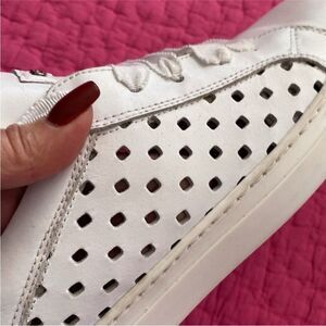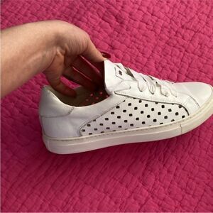 Step out in style with these chic white leather women's sneakers. Perfect for casual outings, these shoes offer both comfort and elegance. Excellent condition