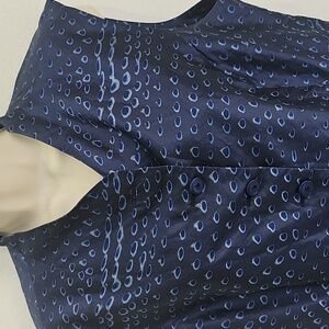 Escade Elements Silk Navy Blue Womens Seelves Top Size US M European 42