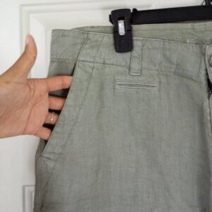 Escales Paris Casual Shorts Mens Olive Green 100% Linen Size 40 EU