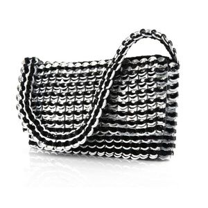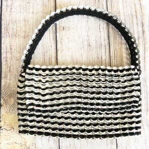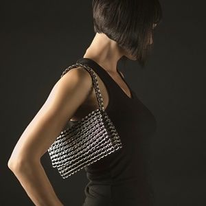 Fabulous metallic Escama Studio Small Shoulder. 10 Inches by 6 inches. Petite shoulder bag with fold over flap. Beautifully finished with soft black satin lining and zipper closure. Perfect for those nights out on the town.