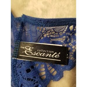Unveil your allure with the Escante Sexy Strappy Lace Mesh Halter Chemise G-String Set, a quintessential addition to your intimate apparel collection. The ensemble, presented in a vibrant royal blue hue, is designed to flatter with its form-fitting lace detailing and alluring strappy mesh halter. Tailored for the modern woman, this set is available in a size medium, ensuring a comfortable and seductive fit.