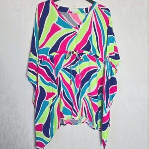 Escapada Ladies L/XL Aegean Blue Poppy Short Sleeve Kimono Cover Up Beach Summer