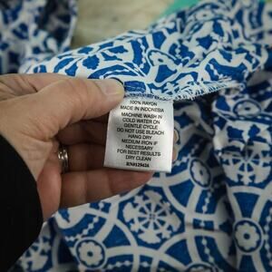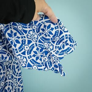 Escapada Size XL Cobalt Blue Zambia Cinched Tie Crew Scoop Neck Short Sleeve Vacation Resort 100% Cotton Top Blouse Shirt NEW