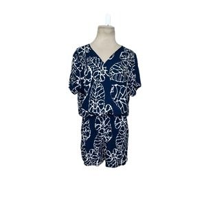 Escapada blue white tropical print romper size medium