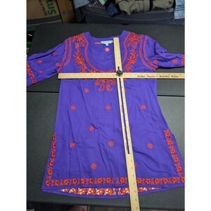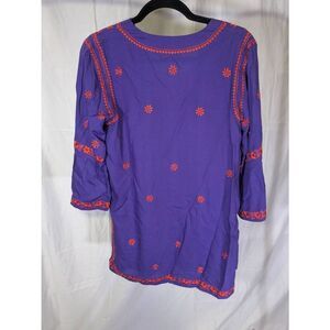 Escapada Purple Tunic Top Red/Orange Floral Embroidery Women’s Size Small