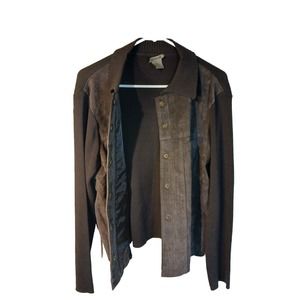 Escapade Brown Suede Front Long Sleeve Sweater Snap Front Jacket Women's LG