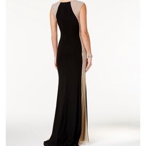 Escape formal dress with sheer beaded sides and sleeves.
