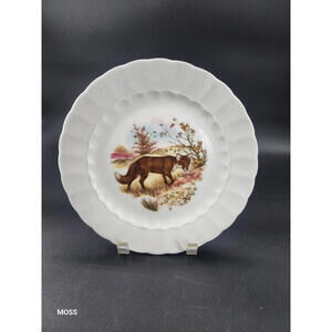 This dinner plate platter features a wild motif of a fox and is made of high-quality porcelain by Eschenbach Bavaria. The design highlights the theme of a fox in a decorative and elegant style, perfect for serving meals or showcasing as a beautiful piece of tableware. With a diameter of 9.5 inches, this plate is ideal for adding a touch of charm to any dining setting or collection of decorative cookware and dinnerware.