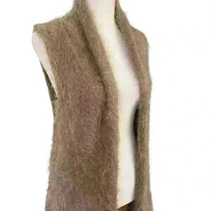Escio Duster Women's Eyelash Knit Sweater Vest Size M Tan Crochet Back Boho Cozy