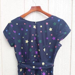 Eshaki Rainbow Star Modest Midi Tie Waist Dress Cap Sleeve Scoop Full Sz 10