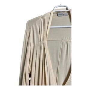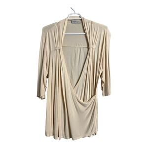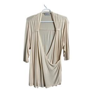 Eshakti Custom Draped Blouse Beige Cream Plus Curvy Queen V-neck Plunge XXL