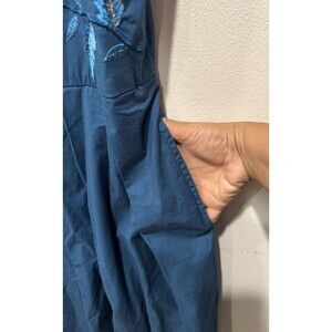 Eshakti Dark Teal Floral Embroidered Poplin Over the Knee Cotton Dress Sz 2X