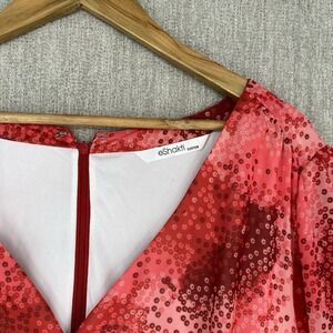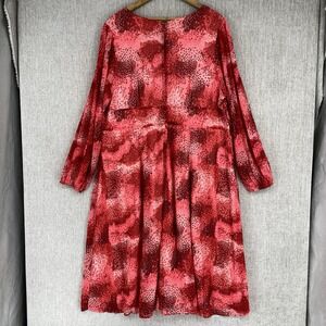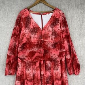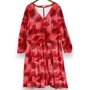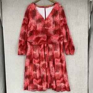 Eshakti Dress Womens 2X Red Midi Tiered Long Sleeve V-Neck Modest Chiffon Print