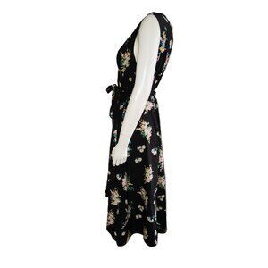 Eshakti Dress Womens Plus Size 1X/18W Black Yellow Floral Wrap Sleeveless Cute