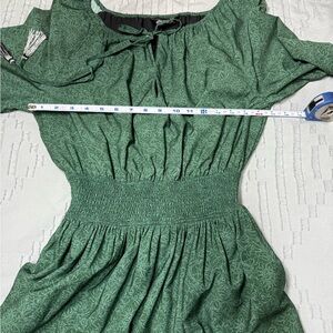 Eshakti Dress sz4 Smocked Green LS pockets Cottagecore Prairie Boho