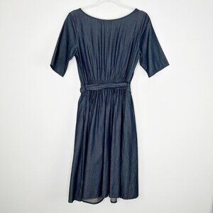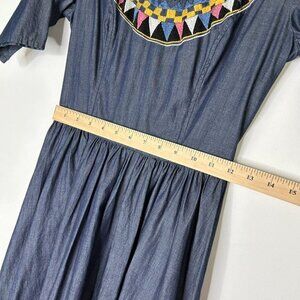 Eshakti Embroidered Chambray Dress Womens Size Medium Blue Tie Waist